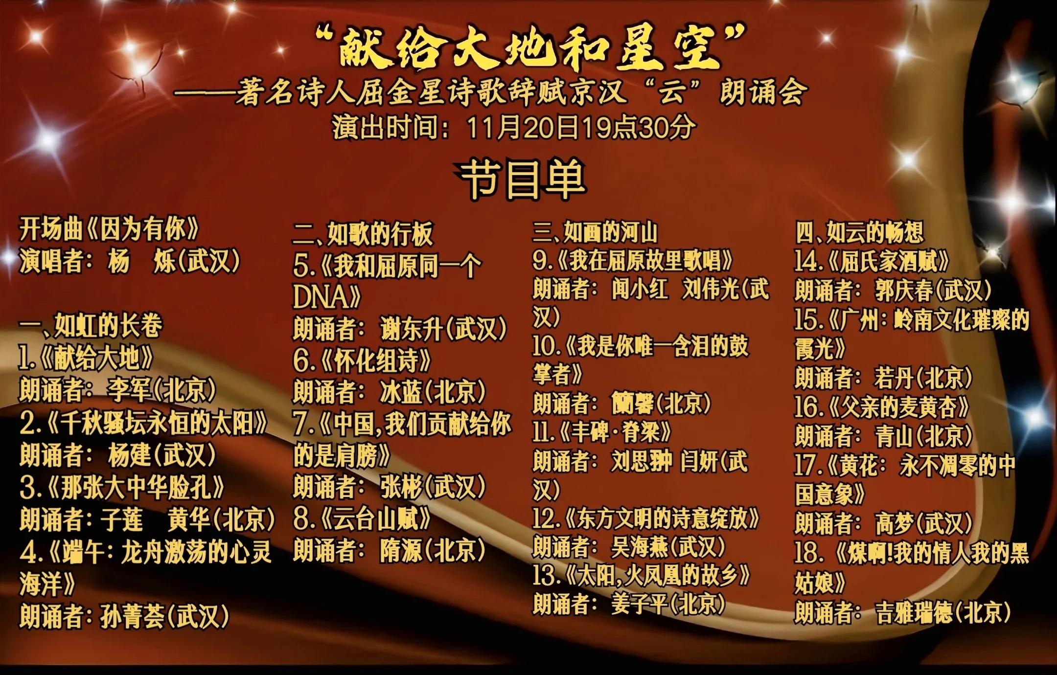 献给大地和星空——屈金星诗歌辞赋京汉“云”朗诵会圆满举行