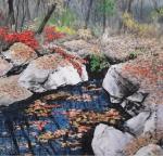 (读画录)落叶有情寄潭影—-读著名画家吴国亭的《秋叶飘零》