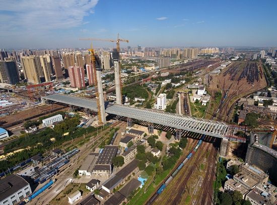 古风.驱车过郑州农业路高架跨越铁路北站有感 (新韵) 文/追梦者