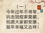 今年过年不寻常, 抗击冠疫家里藏, 祝愿大家都安康, 鼠年幸福又吉祥!