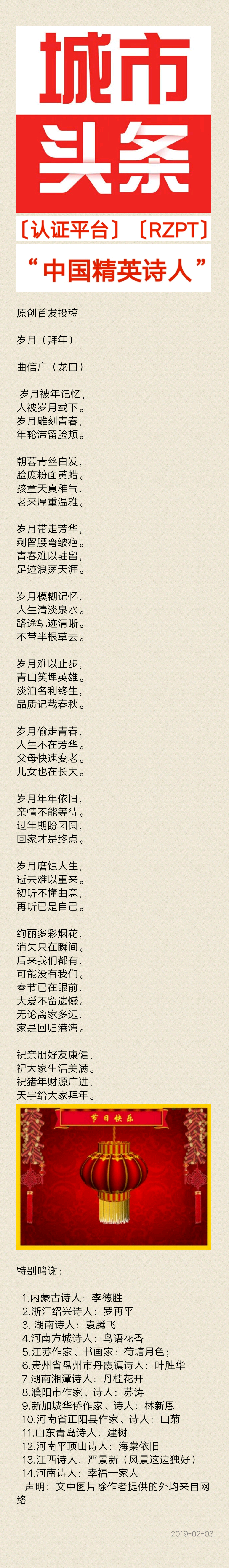 平顶山头条向全球发布诗人曲信广精品诗歌