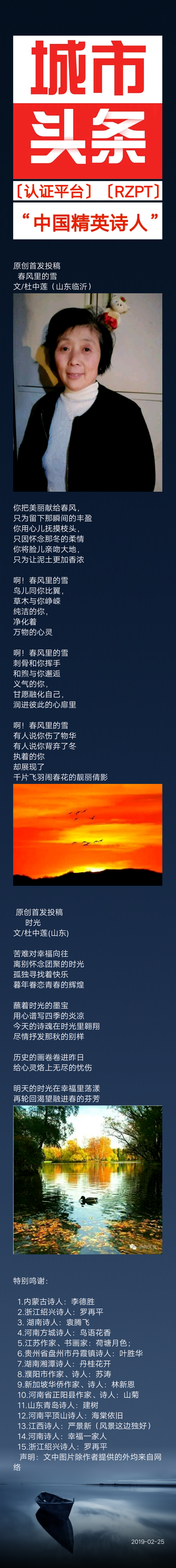 平顶山头条向全球发布诗人杜中莲精品诗歌