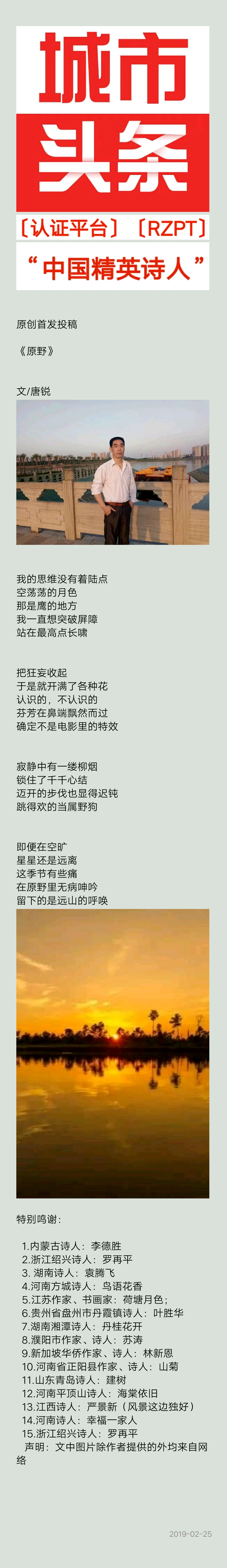 平顶山头条向全球发布诗人唐锐精品诗歌