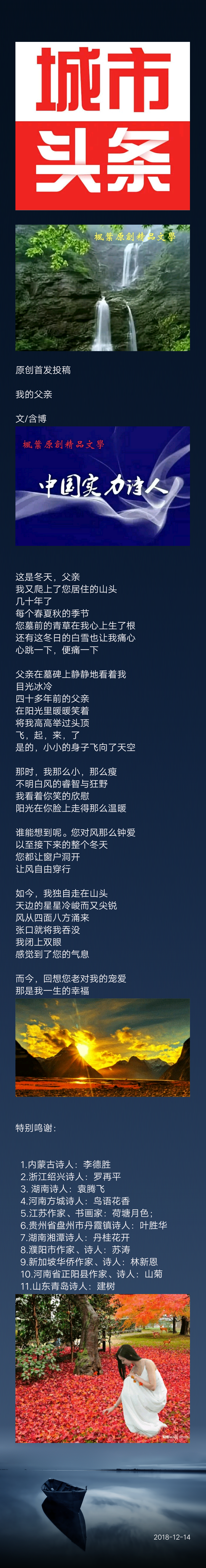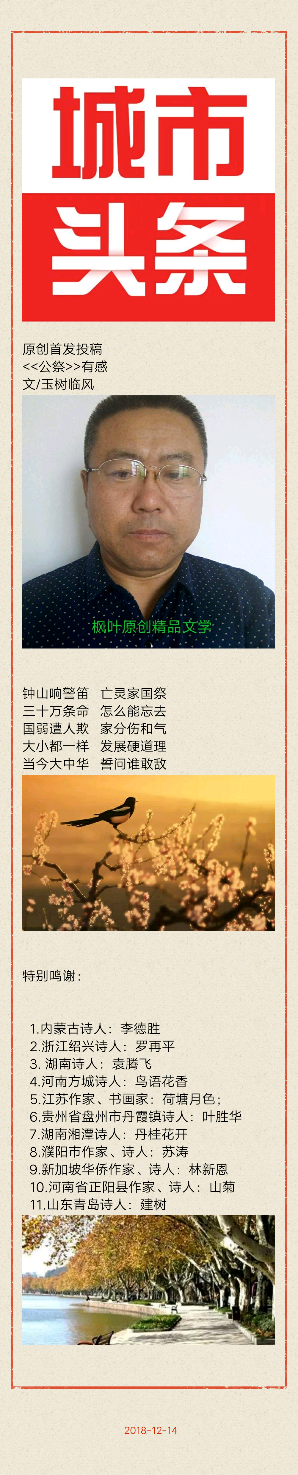平顶山头条向全球发布诗人玉树临风精品诗歌