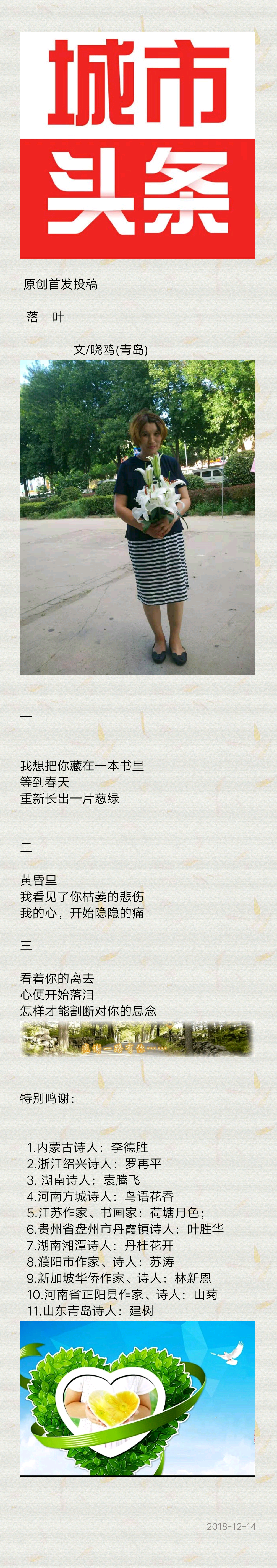 平顶山头条向全球发布诗人晓鸥精品诗歌