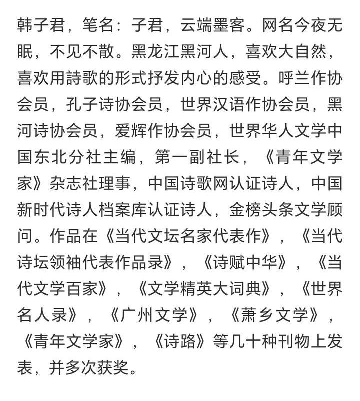 沉痛悼念韩子君副社长一一听雨斋诗社【2050期】