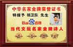 今日热文搜索诗词人物【杨卫东特聘金牌诗人经典诗词专栏鉴赏】《当代文坛名家》高端人才写作平台热网联播