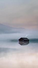 湖畔烟树