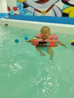 七律·周岁乖孙唐正熙游泳开心快乐