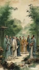 研子、果遂艺人书画苑/蓝高雄 七律诗、《竹林七贤》