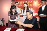 著名书画篆刻家盛洪义先生应邀参加“家校社共育推进会”并为与会人员签名他首部散文集《摊煎饼》