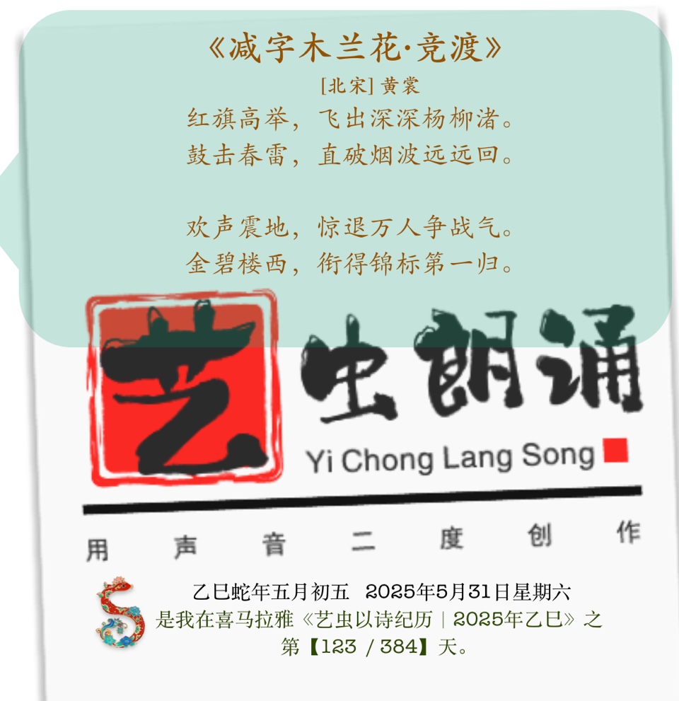 乙巳123.艺虫日读古诗词《减字木兰花·竞渡》/认证金牌主播