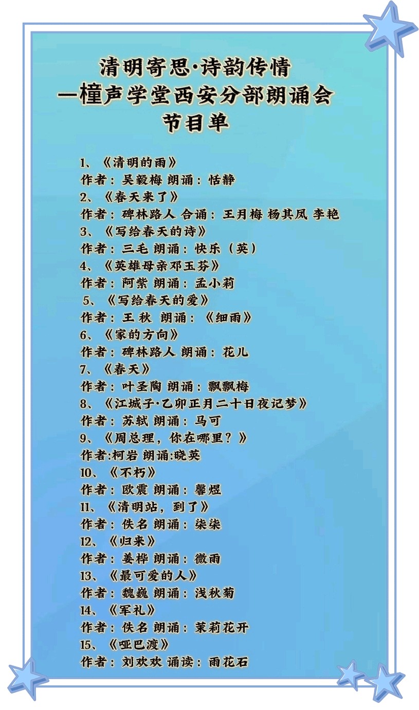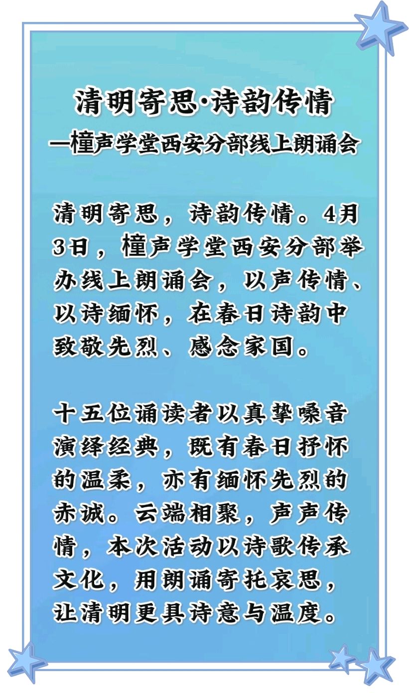 【橦声学堂】西安分部 ‖ 清明祭思·声韵传情 ‖ 线上朗诵会