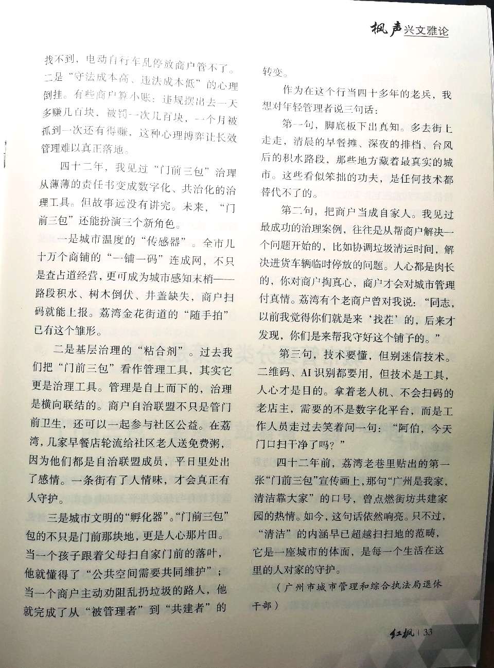 中共广州市委老干部局《红枫》2026第2、3期 刊登池朝兴《42年守望“门前三包” 见证广州城市治理之变》