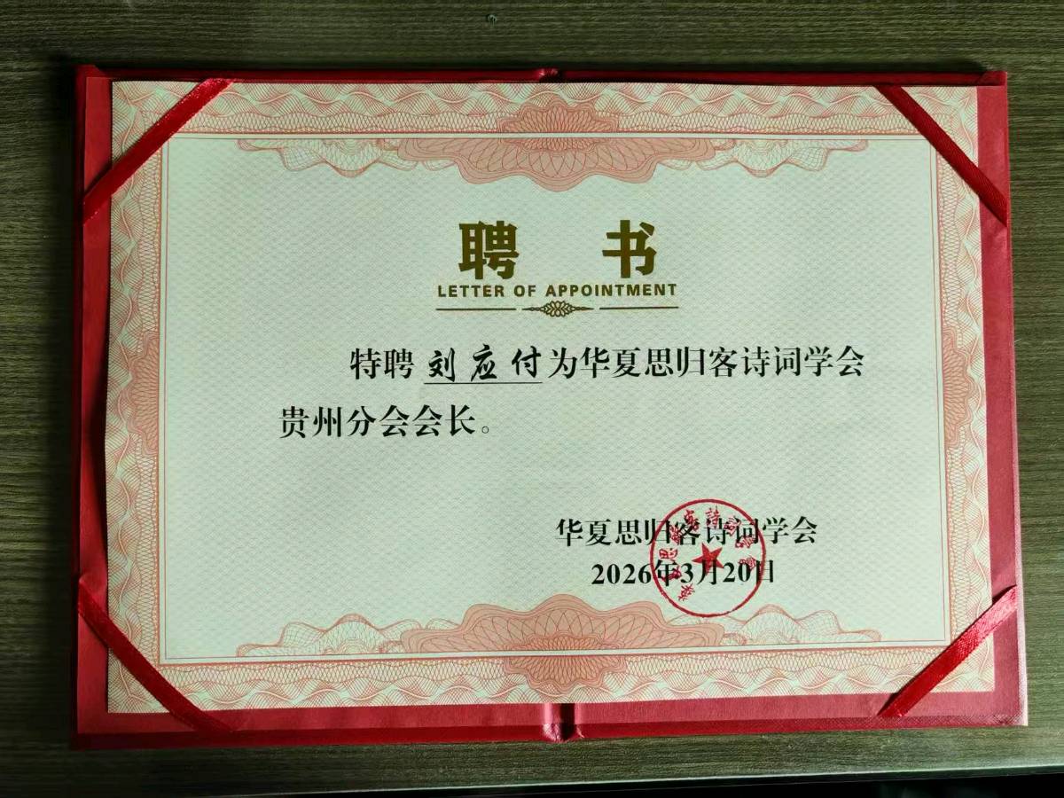 华夏思归客诗词学会贵州分会会长特聘书及新会员展示