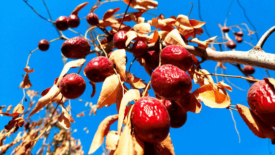 由于红枣挂在枝头缓慢、自然的风干,养分的输送未曾间断,因此这才有了果大、肉厚、皮薄、核小、味甘的绝世佳枣。
