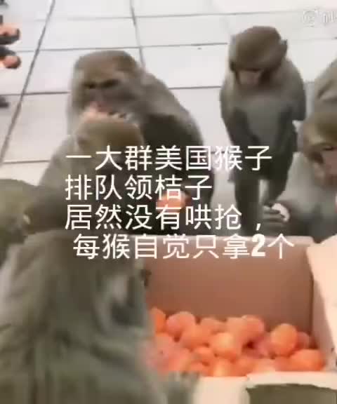 这群猴子居然未哄抢食物,而人却在哄抢。说明了什么?