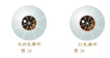 (2)当黑眼球边缘出现一红色发散的光环,此人必有胃窦炎,胃火很旺,红色光环越宽病越重。
