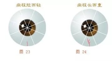 血丝比较细时,病不太严重,当血丝很细时,则病受到损伤很小,患者可能没有任何症状;血丝粗时,说明病较严重;当血丝细而呈网络状时,则代表这个区域均有损伤,但不太严重。