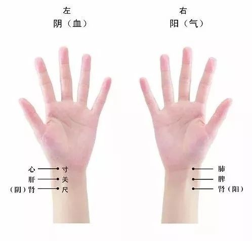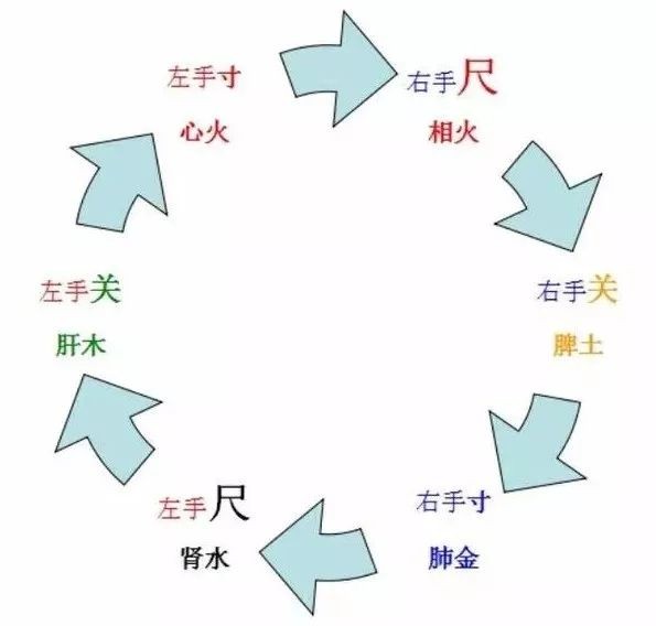 我们的手上,以枕后高骨为关脉,前面为寸,后为尺脉,然后浮,中,沉取,左手,寸脉主心,小肠,关脉主肝胆,尺脉主膀胱,肾右手,寸脉主肺与大肠,关脉脾胃,尺脉肾与命门。