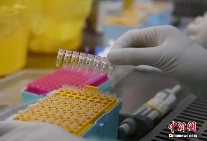 检测员在病毒中提取的核酸样本,上机后很快就可以呈现病毒核酸的特性。中新社记者 韩苏原 摄
