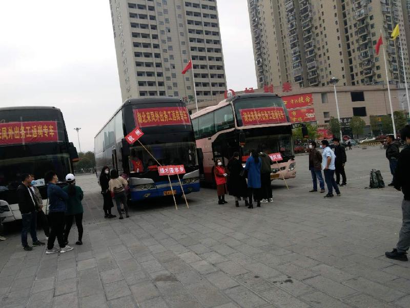 来凤浙江点对点返岗籍员工今天又在喳西泰准备上车