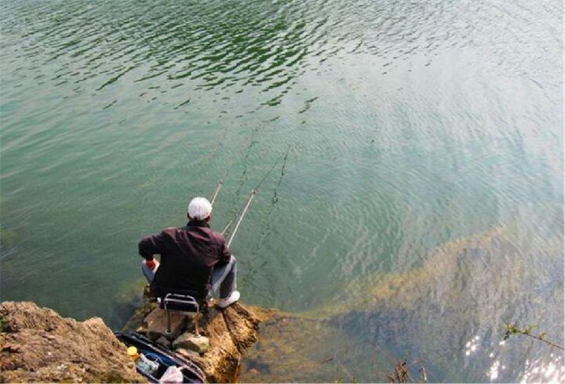 河岸两排钓鱼人