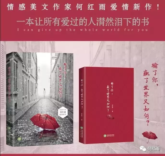 何红雨:陕西省作家协会会员,西安市文联签约作家。她以文笔清丽、意境唯美、情感细腻深受读者喜爱,著有《女人就是要活得漂亮》《独美》《草木相思》《输了你,赢了世界又如何?》《谁的少年,会没有叛逆》等多部作品,至今已发表作品300余万字。
