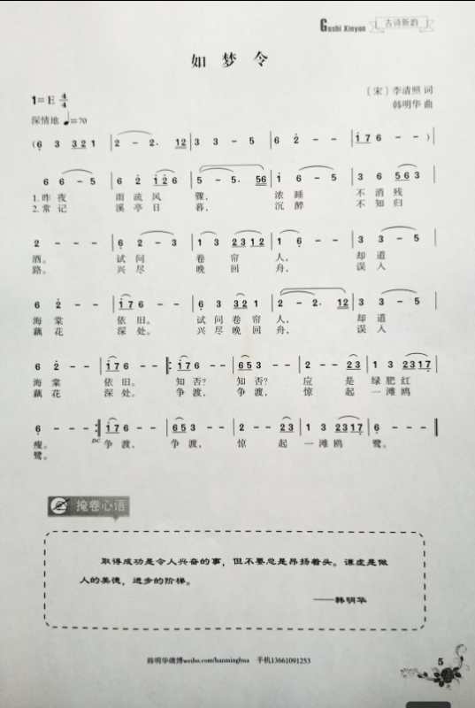 二〇〇六年,韩明华将《岳阳楼记》谱曲,演唱,史无前例。