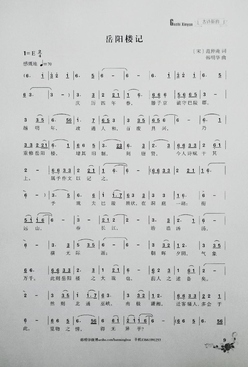 二〇〇六年,韩明华将《岳阳楼记》谱曲,演唱,史无前例。