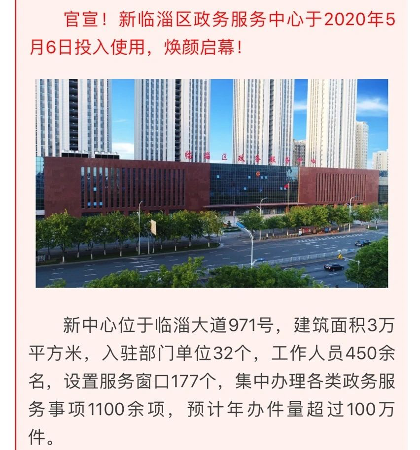 临淄区政务服务中心乔迁西区杨坡路附近