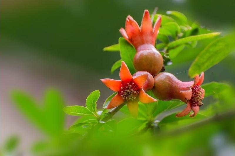 榴花似火醉红颜,远望群峰卷翠帘。
