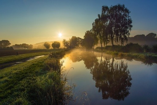 水雾朦胧的傍晚