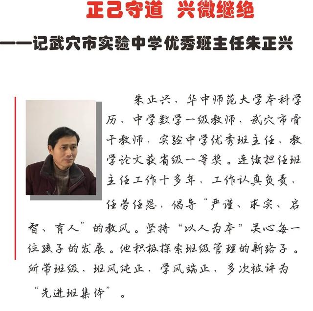 这是实验中学优秀班主任朱正兴内心最朴实无华的表达。从翩翩少年到鬓发花白,三十余载,他无怨无悔,做教育瘠田里躬耕的农夫,用勤奋与汗水浇灌禾穗,用真诚与智慧托举希望。