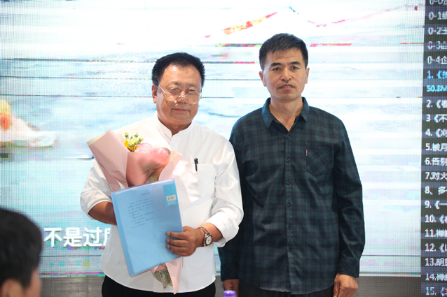 颁奖礼盛典上嘉宾子线书法绘画音乐界友人辽宁书画网书画院张中立院长、大连星烁印社烙粉画家杨宝富、长兴岛音乐人冰雪画家尹相勇老师向中国铜雀台头条传媒子线举办了正式的馈赠大幅创作山水、烙印画、冰雪图仪式。