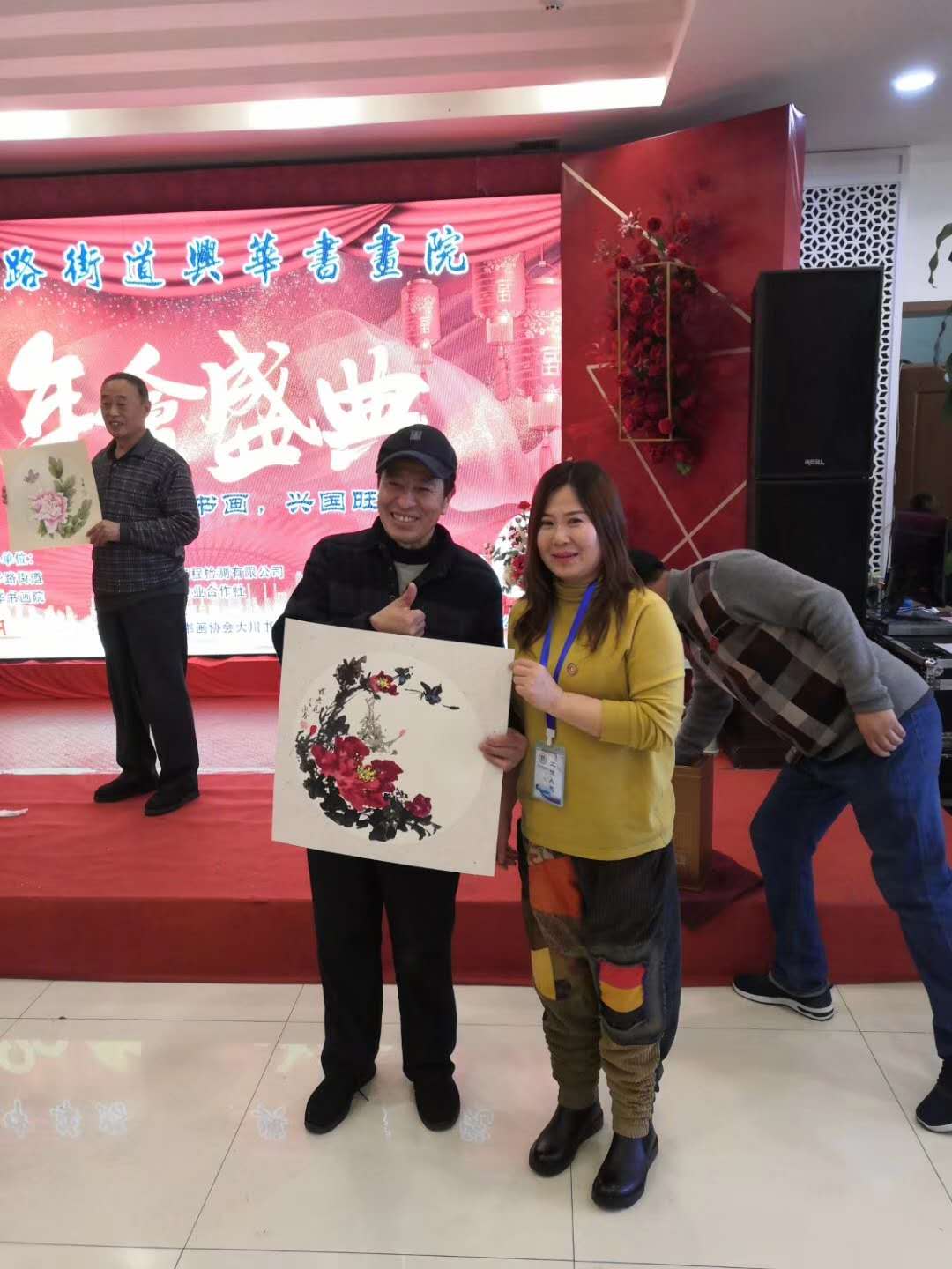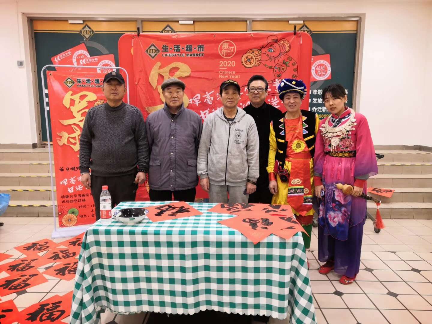 年节在商场做义务演出,陪同兴华书画院老师写写福字和孙女在商场表演 ▲
