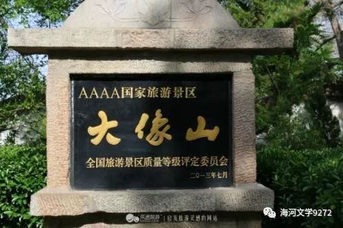 大像山公园背倚大像山。在公园里,就可以仰望到山顶上那第六窟著名的大佛像。“这尊释迦牟尼佛像,石胎泥塑,高大威严,面北端坐,莲花台座,腰围系带,胸前打结,外着袈裟,双领下垂,身躯雄伟,肌肉丰满,双耳垂肩,肩宽厚平,神态安详,面露微笑,肉髻高突,双眉弯曲,眉间白毫,右旋宛转,两眼明澈,目光深邃,俯视众生,鼻高而直,双唇丰润,唇有短须,颈部短直,左手抚膝,右手上举,似托佛印,两足下垂,赤足踏台,这是大像山最负盛名的景点。大佛像可远溯北魏,有一千三百多年之久的历史。大像佛令人仰止,那慈眉善目的神情,那慈悲天下的胸怀,那博大精深的心智,似乎在告诉我们信仰无敌、众生平等、正义无价的道理。”同行的人介绍道,“唐代以胖为美,是不是跟时人多信佛、世上佛像多肥美有关系?窃以为是也!”