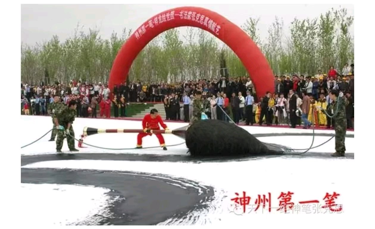 张克思他有一支长约6.3米、重约183.5斤获得吉尼斯世界纪录的马良“神州第一笔”,有书坛上的定海神针之誉。