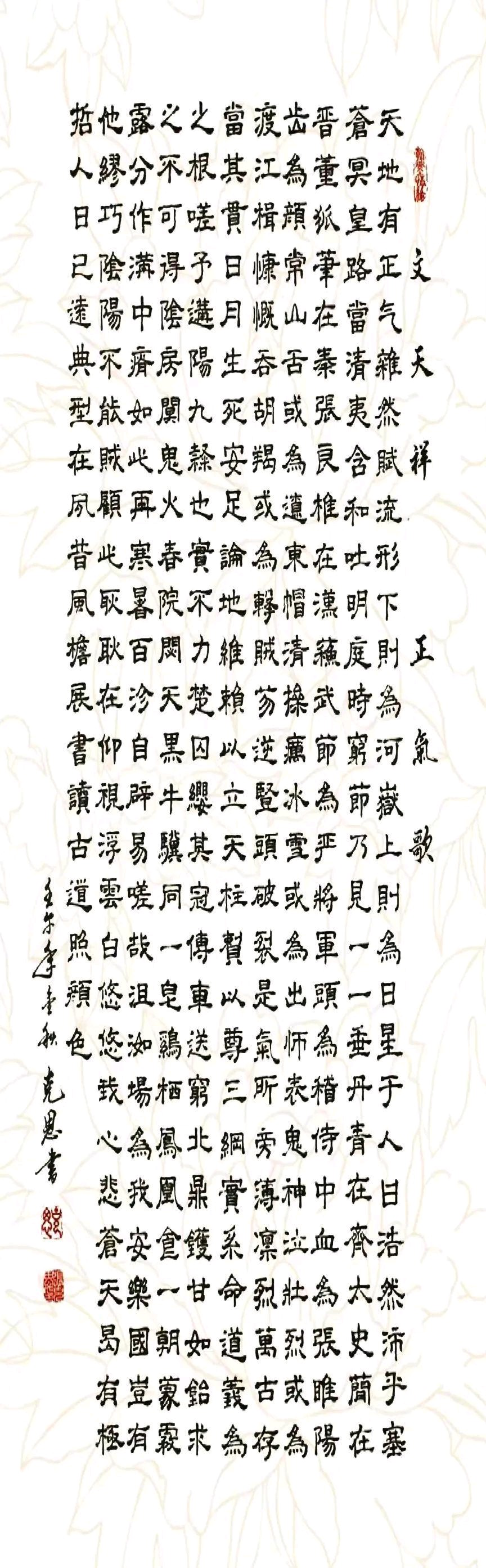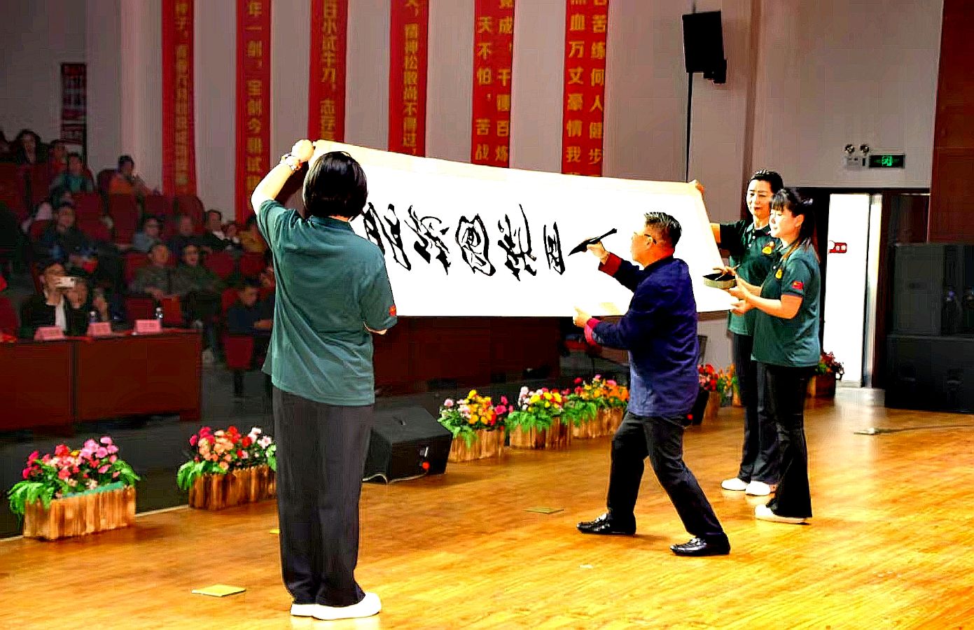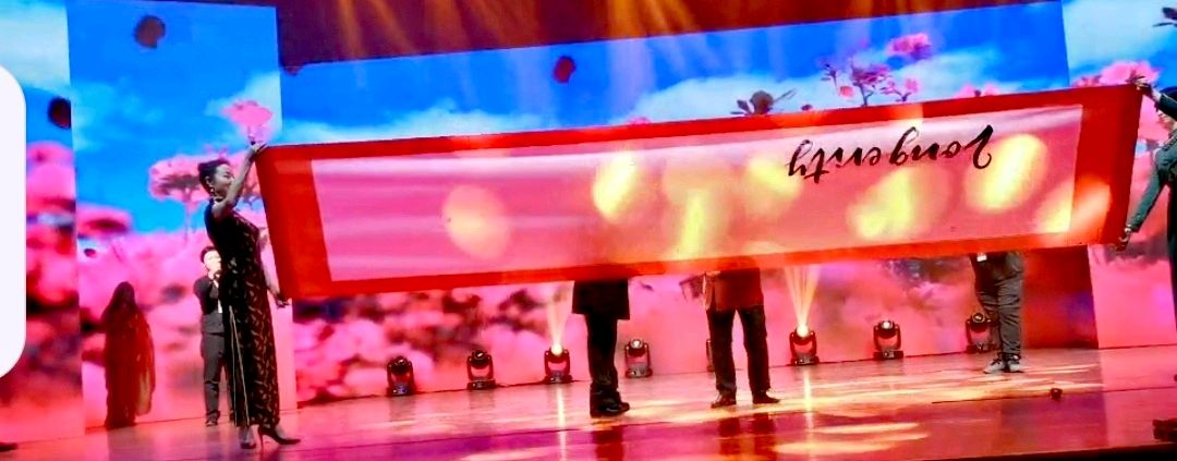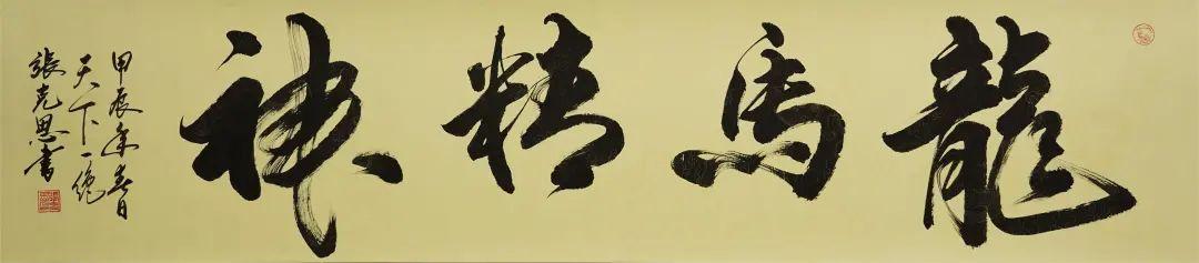 逆施”等罕见、震撼、大场面的现场表现形式为书法创作独辟蹊径,以新颖的创意构建了全新的书写范式,独创了新的形式与范型,彰显令人叹为观止的书法艺术之美,唤起更多观众尤其是青少年朋友和国外友好人士对中华民族传统书法艺术的关注与热爱,使外国人从书法之美感悟中华文化之韵,感受到中华文化的博大精深,以文明交流互鉴,促天下大同之美。张克思以遵守先辈书画章法之本,又创新发展传统书画艺术之魂,他用书法把汉字的结构处理新奇精湛,笔势雄健洒脱,字体遒劲有力,技法出神入化、力透纸背,知行合一。