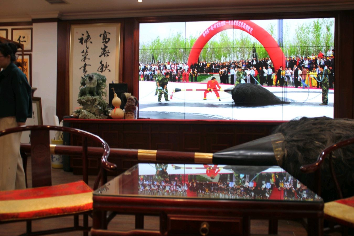 大约下午16时许,就在那支陈列在一楼大厅的一支长6.3米,重约183.5斤的“”神州第一笔”的神笔前,张克思先生接受并开始了我们对他的专访他说:.“要继承弘扬华夏五千多年中华文明首先要从书法写字开始,我们不但要学习临摹先辈的书法章法和艺术,更要在继承和发扬中把书法艺术进行创新,不能模仿写字而去临摹写字,不能把书法艺术变成了临摹写字者,要在先辈书法章法艺术基础上进行创新发展。”