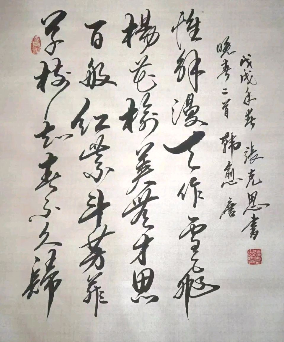 张克思的书法之所以能引起人们的关注与感叹,是因为他传承发扬“字不惊人死不休”创新创造精神,寄望于以“倒行