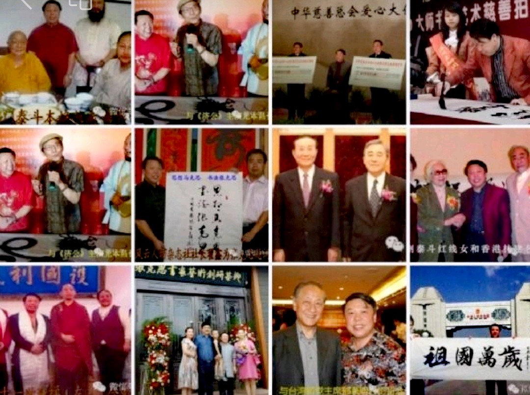 2014年,在大连希望工程慈善晚会上,他现场书写拍卖,其中“诚信赢天下”拍卖50万元、“寿”拍卖50万元、“精气神”拍卖60万元、“龙惊世界凤舞中华”拍卖90万元等,最终晚会筹集善款突破1000万元。2015年9月29日,他应邀参加庆祝联合国成立70周年世界首脑会议,并现场表演中国书法艺术。2017年9月应邀参加庆祝香港回归20周年汇演。