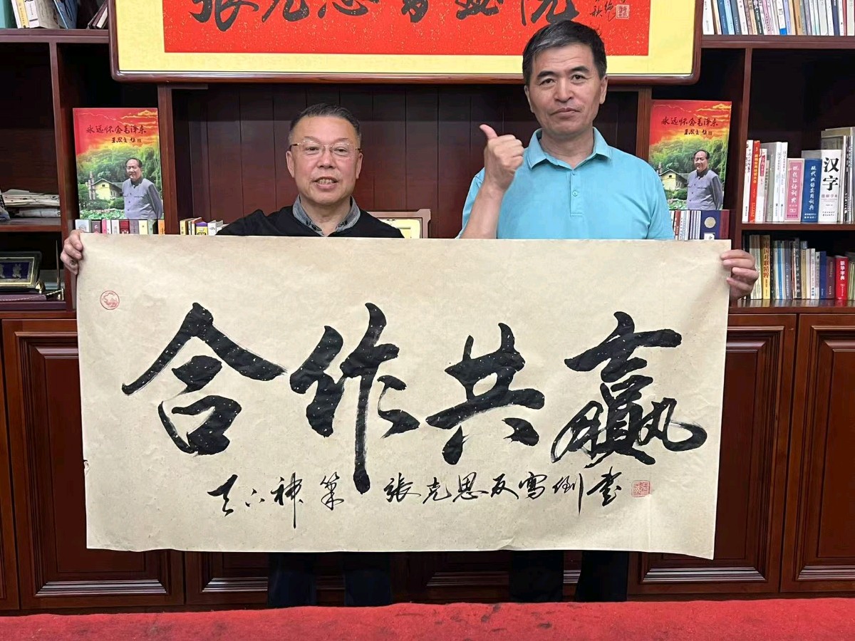 2025年6月9日张克思大师现场挥毫反书倒写题写墨宝《龙飞凤舞》《合作共赢》△