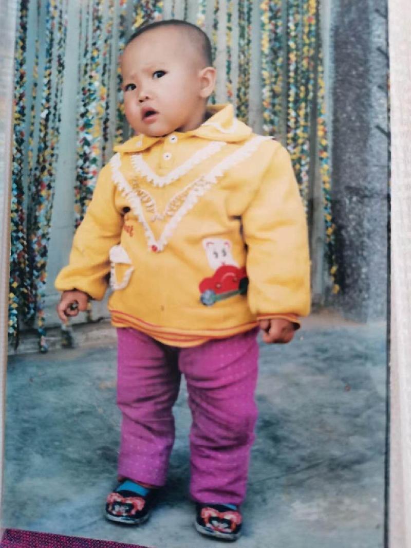 据养父母说,我是在山西省朔州煤矿抱养过来的,当时还给了别人200块钱。据养母说,当年有个写有出生日期和地址的纸条被她撕掉了。一岁之前的事养母从未提起过,只说小时候左眼泪管不通,整天流眼泪,因为营养不良还总是爱摇头,所以推测到养父母家是几个月到1岁以后。