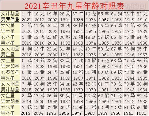 男木星、女水星:虚岁年龄18(2004年出生),27(1995年出生),36(1986年出生),45(1977年出生),54(1968年出生),63(1959年出生),72,81。
