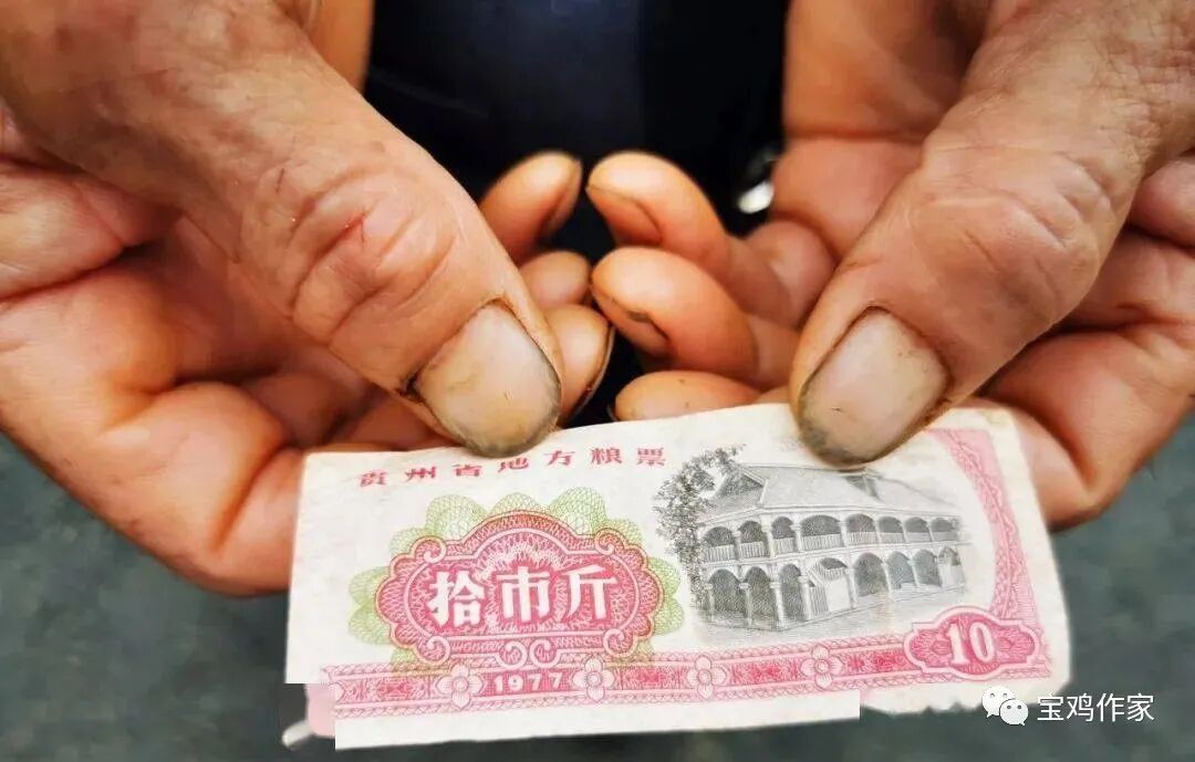 这时,从不远处走过来一个人,我细细一看,原来就是给我发粮票的管理员,我忙赶过去,把粮票交给他,我俩对面一点,杂粮十五斤,细粮十八斤。我那三十斤粮票吃完了,我找到管理员,通过那次我拾粮票的事,他更认识我,夸奖我,并给连队队长和指导员说了,他们还在开会时表扬了我。这次管理员二话没说,就给我领了四十斤粮票,比上次还多了十斤。那十斤,全部是细粮,我高兴及了,忙打了条子。他还告诉我,失主找到了,原来那失主也是洗衣服的,怕把粮票湿水了,放到那里忘了。那段时间修渠忙,上面抓得紧,全县近千人劳动在大坝上,拉土垫渠,白天干一天,晚上还要加两个小时的班,我累坏了,晚上一回来倒头就睡,那有功夫再数粮票,心想吃多少算多少,何况每天队上还补助半斤粮。我也想通了,放开吃,加之一天到晚拉架子车,活也吃力。我也想好了退路,如果下次管理员不给领饭票,我也就卷铺盖回去了。天下雨了,秋季阴雨绵绵,那房檐水掉线线地淌着,天上阴云密布,一个礼拜过去了,天上雨好像没个完,小雨、中雨交替着下,那泥泞不堪的街道上积满了雨水,那常常欢叫的小鸟也不见了踪影,那街道上的树,被雨淋的也落了不少的叶子,就连街道上常常碰见的那只大黄狗也不见了。那次我冒雨回家了,停了十多天, 天晴了,我拿上母亲给我烙的两个锅盔 又去工地了,在工地共干了两个多月,被别人换下了。之后我被招到一家乡镇企业,在外跑销售,更离不开粮票,在陕西省内,就用陕西粮票,出省就用全国通用粮票。记得在粮站换陕西省粮票是百分之六十麦,百分之四十玉米,换全国粮票全部要麦子,就全部拿麦换也限制着着,多亏门份我碎爷是粮站会计,每次找找他,都会多兑换些全国通用粮票。我出差在省內一般都是一碗素面二两粮票八分钱,肉面二两粮票一毛钱。那时黑市也有卖粮票的,价钱不等,一斤就是一块钱左右。我在单位包的房间内,闲了也就点点粮票,那时是全国计划经济,干什么都要票,国有食堂,你就是有钱,没粮票也别想吃一碗面,就连一两粮票,五分钱烧饼也别想买到。