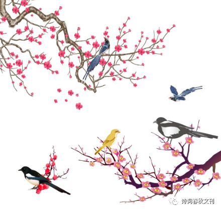 喜鹊叫喳喳,闹梅枝,梅雪哗哗。