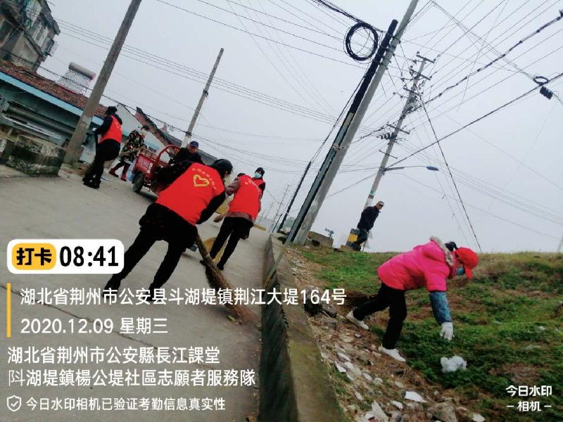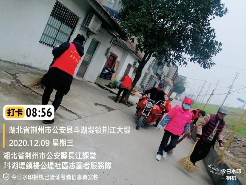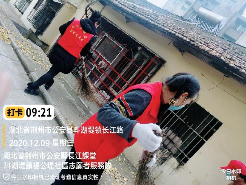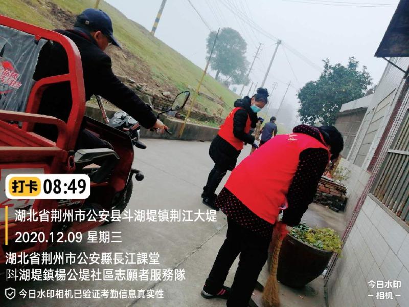 为进一步改善市民生活环境,提升城市形象,彰显志愿者服务新风尚,2020年12月9日,东望集团湖北荆州公安长江课堂的志愿者,应斗湖堤镇杨公堤社区领导谢志军书记的邀请,到社区打扫周围环境。