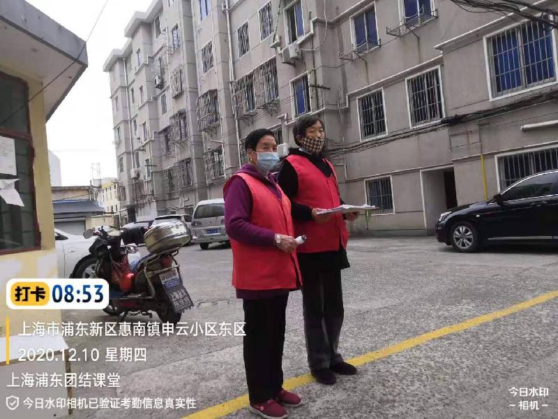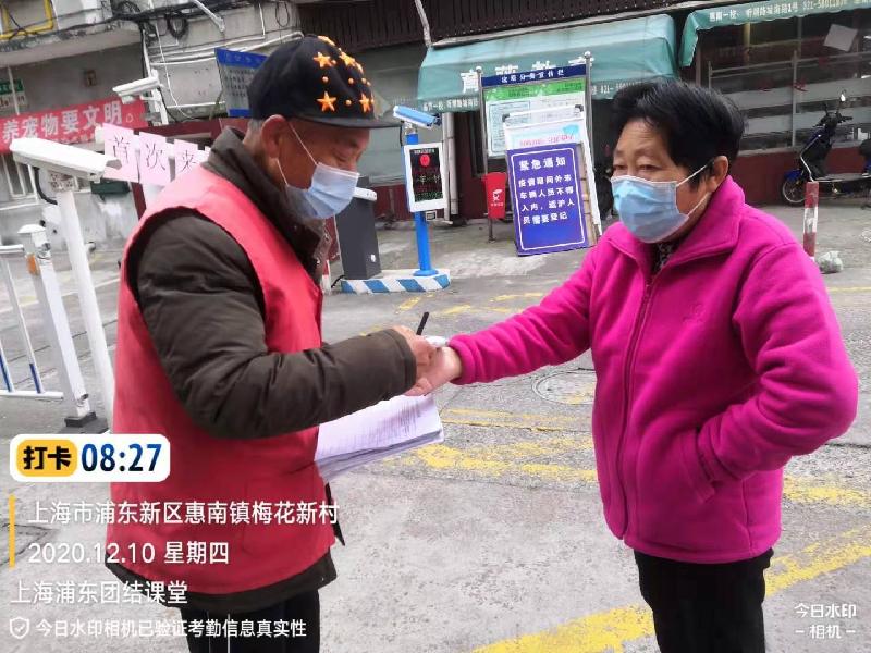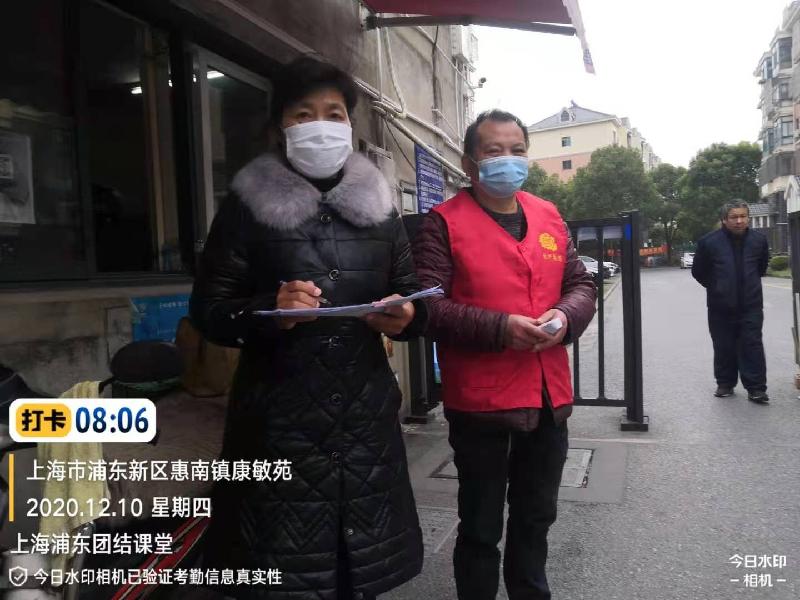在惠南镇康敏苑、香桂园、锦园坊、南园坊、申云小区、梅花新村、联谊新寓、文化新村、康达小区等,志愿者们服从物业安排,积极配合垃圾分类等,为小区年终岁末文明、卫生、健康做贡献;对首次来沪人员、叮咚买菜、投送快递、快餐人员查看有无手机微信随申码,并进行测量体温登记;他们搀扶老年人过马路,向社区居民宣传防疫知识等。志愿者们的真诚付出,受到了物业领导和百姓的高度赞扬!