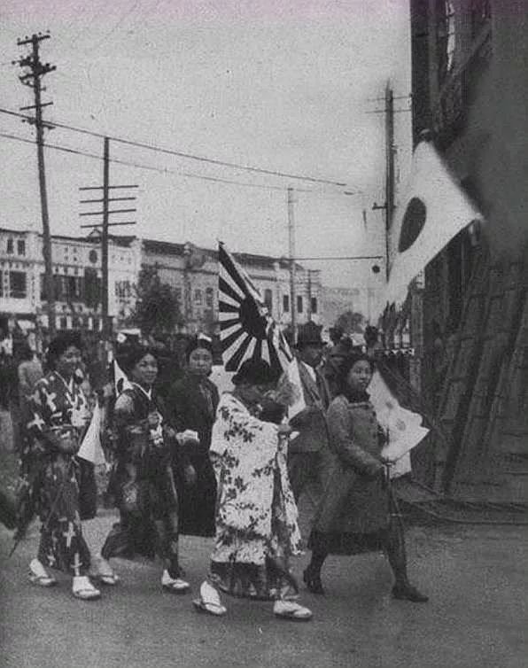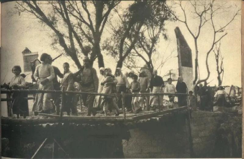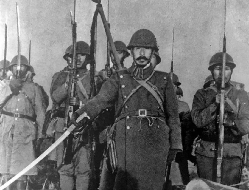 (日军攻占南京城后,日军指挥官率部队登上中山门城楼遥拜东京明治神宫。)